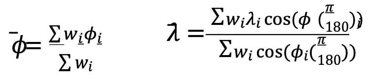 where 𝜙𝑖, 𝜆𝑖 and 𝑤𝑖 are the latitude, longitude and population attached to the basic small units of area used in the computation.