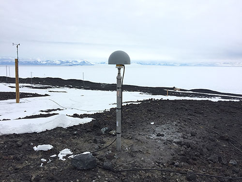 FIGURE 3. The antenna of IGS station ARHT at McMurdo Station, Antarctica. (Photo: IGS)