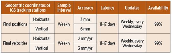 TABLE 2. Quality of service characteristics for tracking station positions and velocities. (Data: IGS)