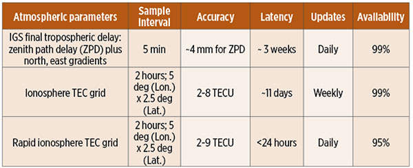 TABLE 4. Quality of service characteristics for atmospheric parameters: tropospheric zenith path delay and gradients and global grids of total electron content. (Data: IGS)