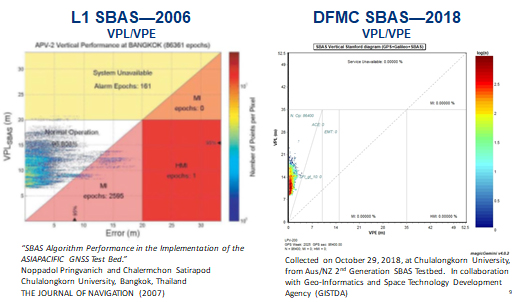 Another test site in Bangkok, Thailand has demonstrated that existing L1-only SBAS in this area cannot manage this performance (all current SBAS are L1 only), but that with dual-frequency multi-constellation (DFMC) GPS L1/L2+Galileo E1/E5a, the required performance limits could be met.