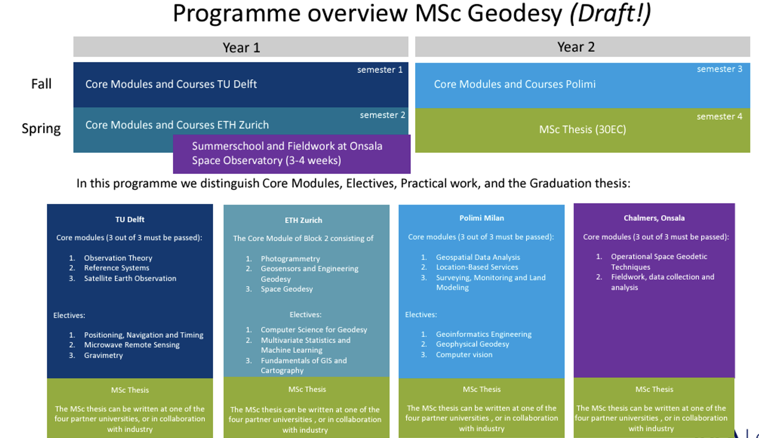 The group provided a preliminary program design for a MSc Geodesy. See the image below.