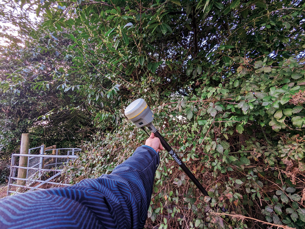 “We use tilt on every surveying task where we can use GNSS,” Richards said. “Tilt has enabled us to complete numerous jobs where we would have otherwise only been able to use a total station.” Apart from control, there are not many tasks for which Richards would not recommend using tilt, “It has helped improve our surveys. We can capture data quicker and easier than before and with greater accuracy.” Examples of daily challenges his crews face include getting shots in and around ditches, field boundaries, and boundary fences in foliage, and walls with foliage overhang. These are now easily captured using tilt.
