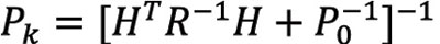 work, “Sensor Modeling and Sensitivity Analysis for a Next Generation Time-Space Position Information (TSPI) System,” Proceedings of the ION International Technical Meeting, 2010. The a posteriori uncertainty of the state or sensitivity, P, at time k is calculated as