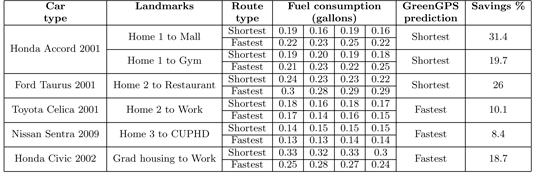 Gas-Saving Pilots. In the first stage of testing, the team solicited volunteers to drive in the area of their university, in Urbana-Champaign, a city of 170,000. In all, 1,000 miles were driven by 16 different cars. Results demonstrated that following the fuel-efficient route saves on average 6 percent over the shortest route, and 13 percent over the fastest. “This was done on flat terrain and in the absence of significant congestion,” Abdelzaher said. “We expect that testing in higher traffic and richer topology will increase the variability in fuel consumption among different routes, resulting in even more potential savings when following the most fuel-efficient route. Verifying this conjecture is currently a topic of investigation for our ongoing research project.”