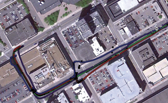 Outputs from each GPS receiver from field and replay runs were logged to PCs using receiver specific binary formats. The recorded output from each receiver included its position, position error estimate, velocity, satellite-specific measurements and indicators such as pseudorange, carrier phase, and signals-to-noise ratio.