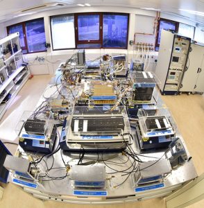The cleanroom environment of the Galileo Payload Laboratory contains the same atomic clocks flown aboard Galileo satellites with the rest of its navigation payload, used to replicate any performance anomalies identified in orbit and make early tests of Galileo Second Generation design improvements.