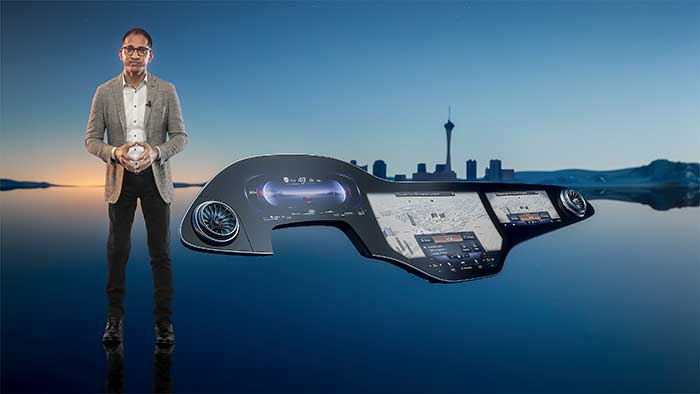 - The Mercedes-Benz’ MBUX Hyperscreen, rolled out at CES, evaluates map data, surroundings and provides information about landmarks along a route, said Sajjad Khan, company CTO and member of the board of management. The new map feature, called Mercedes Travel Knowledge, allows a passenger or driver to ask a question as they drive by a landmark (“hey, Mercedes, what can you tell me about this building?”). The MBUX Hyperscreen is available in the new S-Class cars.
