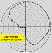 The spoofer’s direction lies behind the null point of the antenna reception pattern.