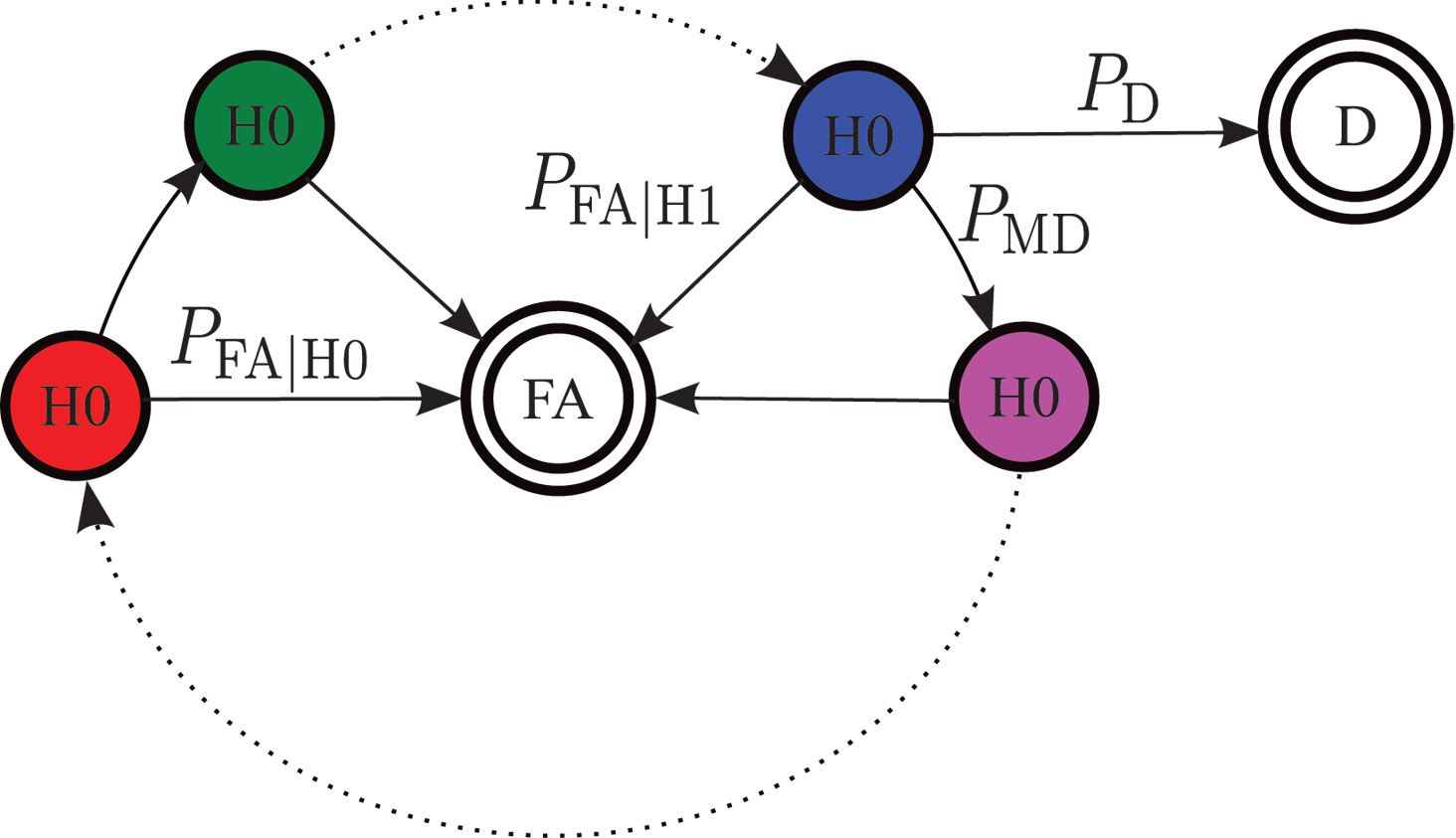 The opening figure shows the various probabilities of transition that can be calculated from detector statistics.