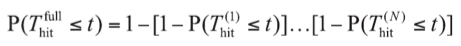 Mathematically, the time to first hit across all N channels, Thitfull, is the minimum of {Thit(k)}, whose distribution function is calculated by: