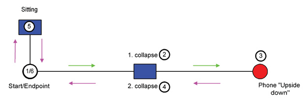 To validate the proposed qualitative navigation approach proposed, a test pattern was specially designed to test the KBD module for two different purposes. On one hand, and by definition, the test pattern should represent all the situations in which detection must be tested, that is, the defined qualitative states: collapse, motionless, and walking. At the same time, the test design should provide means to prove the KBD module resilient against these issues: