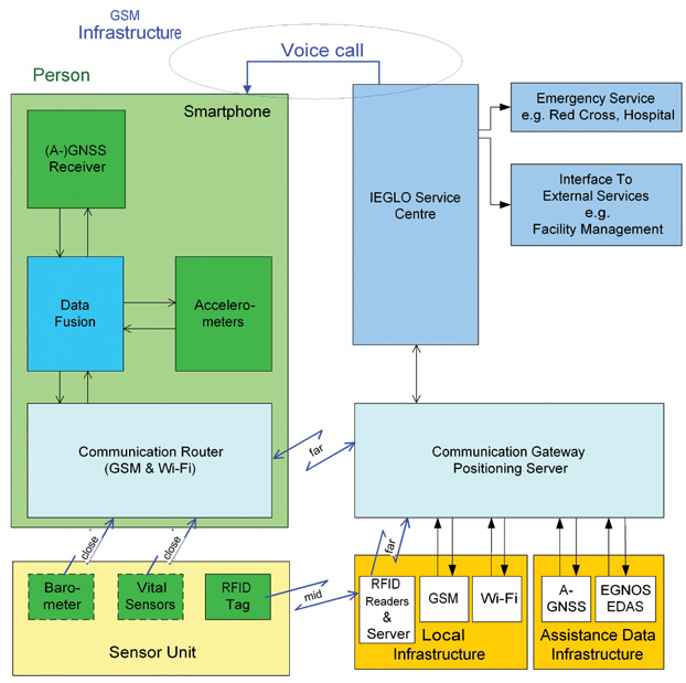Accidents involving senior citizens and handicapped people have increased dramatically over recent years. Elderly people, especially those with Alzheimer’s disease, often get in situations where they need assistance due to disorientation or after a physical collapse. The Infrastructure Augmented Galileo/GNSS Receiver for Personal Mobility (IEGLO) project incorporates seamless indoor and outdoor positioning and emergency call services for healthcare applications.